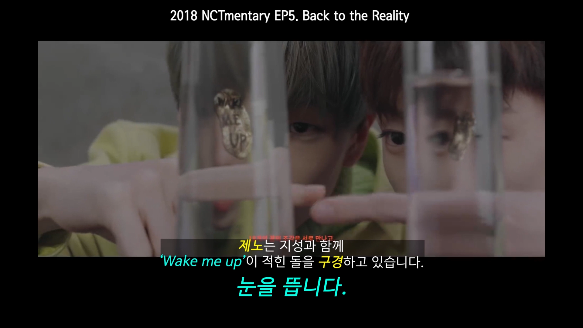 #7에서 다뤘던 NCTmentary의 한 장면, 'Wake Me Up'이 적힌 돌을 제노와 지성이 함께 구경하고 있는 장면이다.