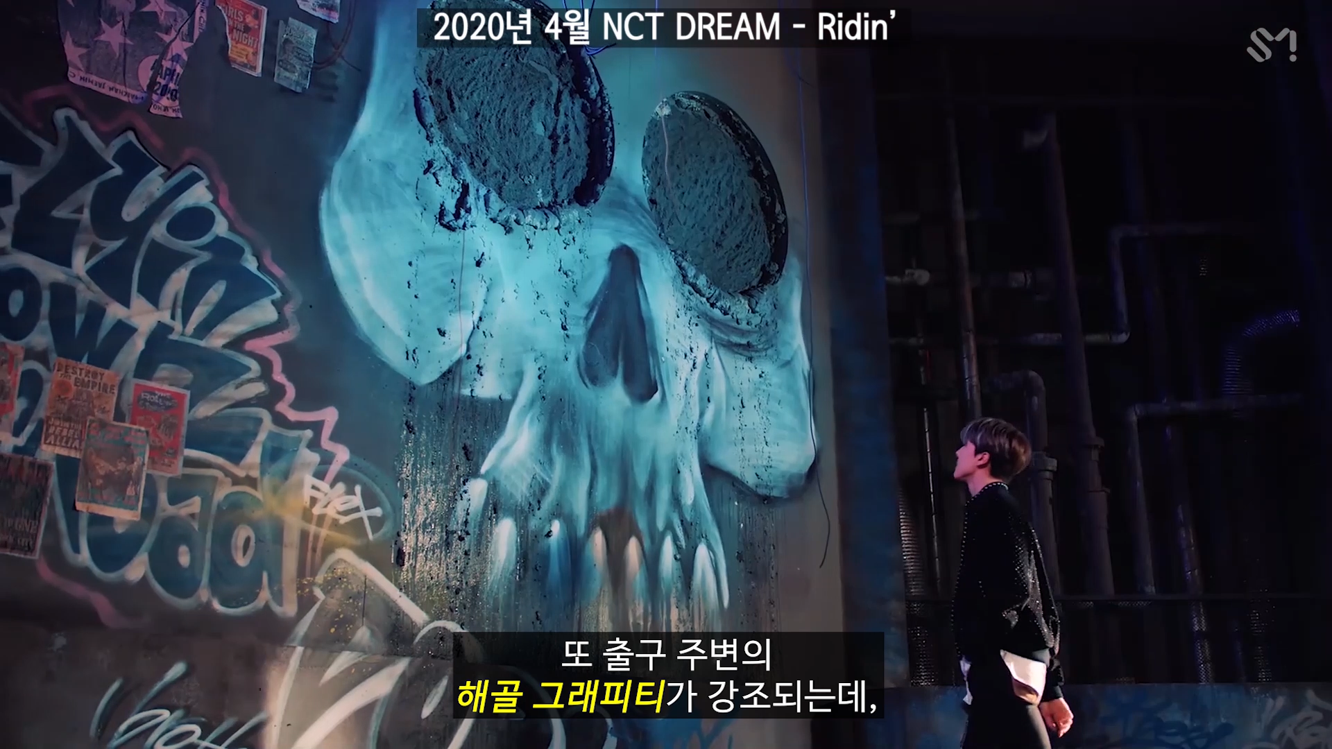 또, 출구 주변의 해골 그래피티가 강조된다.